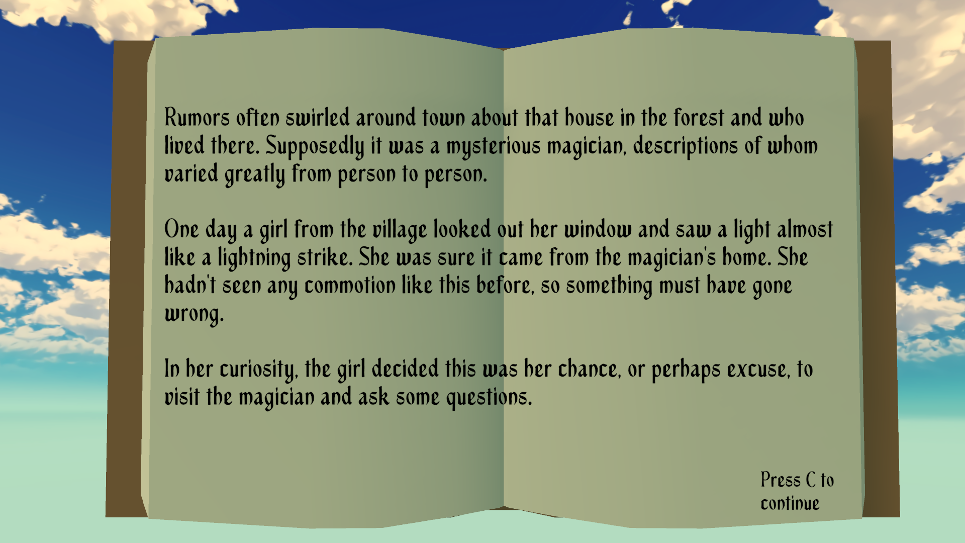 Ideologies of Magical Inquiry is a small narrative focused walking sim, where the player learns how the magic system works through world building.